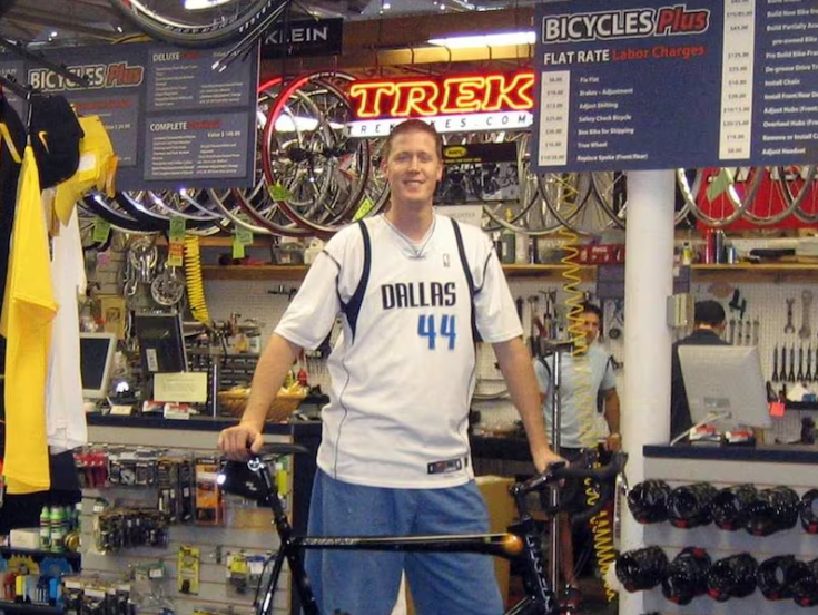 退役后布拉德利爱上了骑行,量身定制了一辆专业自行车。