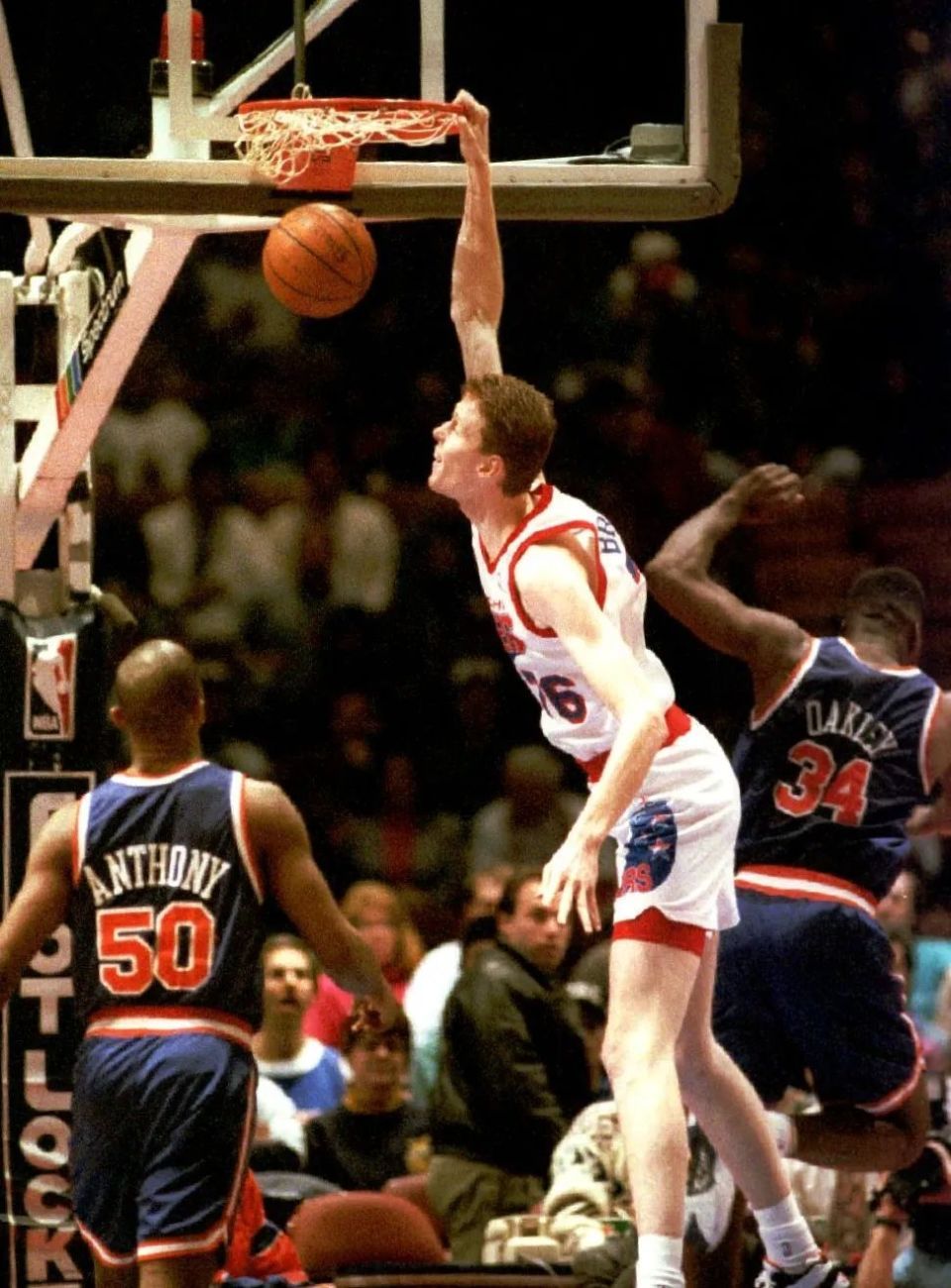就内线统治力来说,全美高中也就同岁的奥尼尔能压他一头了。随后,他大一又在杨百翰大学,创造过单季177次盖帽,单场14次盖帽的NCAA纪录。这个身高天赋,让他成了93年的选秀榜眼,被数字人队摘下。